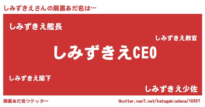 | ヒーロー風カッコイイあだ名 | 『スーパーシミズキエ』『仮面シミダー』 |