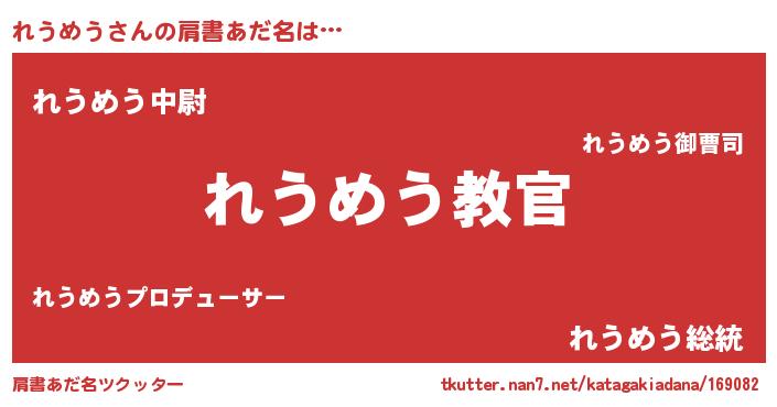 | 男性向けラノベタイトル風あだ名 | 『魔弾の王とれうめう』 |