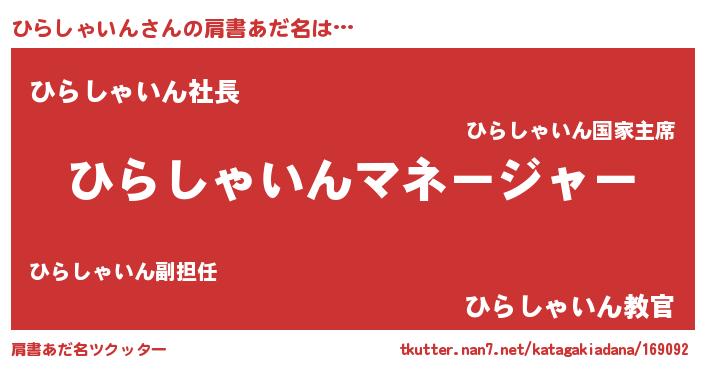 | ポケモン風あだ名 | 『ヒラゴンZ』『ヒラチュウ』 |