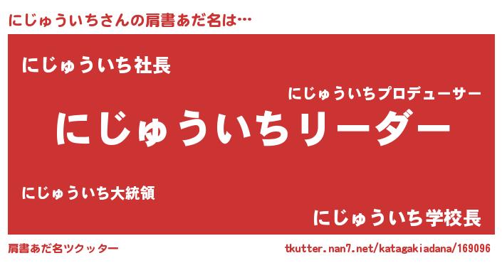 | ポケモン風あだ名 | 『ヒニジュウイチ』『ニジチュウ』 |
