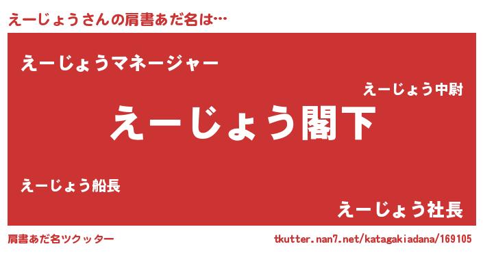 | 男性向けラノベタイトル風あだ名 | 『Re:えーじょうから始める異世界生活』 |