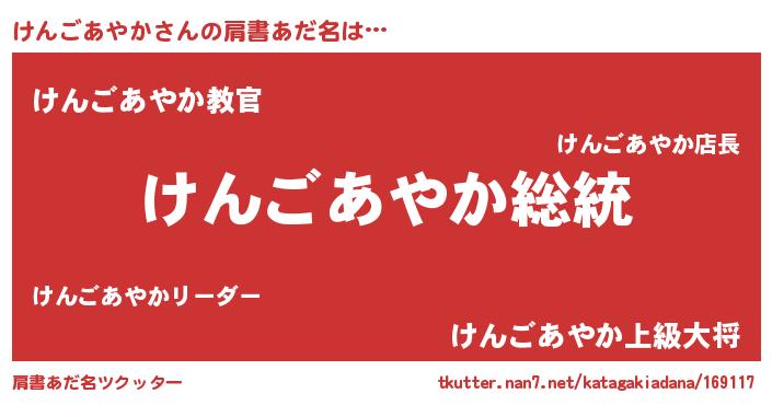 | 意味不明あだ名 | 『自称けんごあやか』 |
