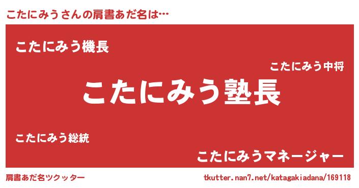 | ヘコむあだ名 | 『こたっ子』『こたにみう(遠い目)』 |