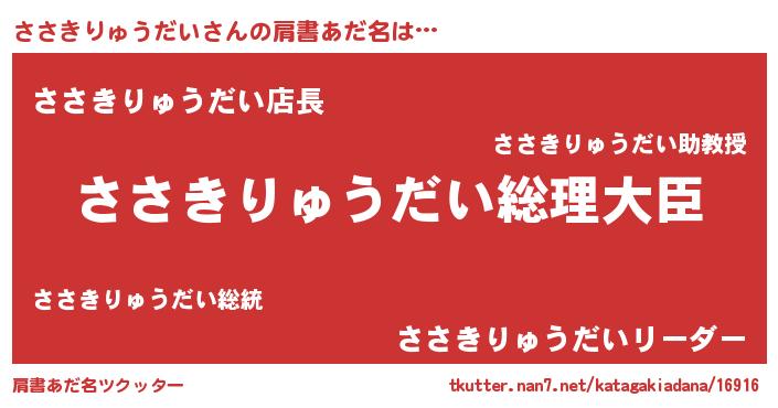 | 男性向けラノベタイトル風あだ名 | 『やはりささきりゅうだいの青春ラブコメはまちがっている 』 |