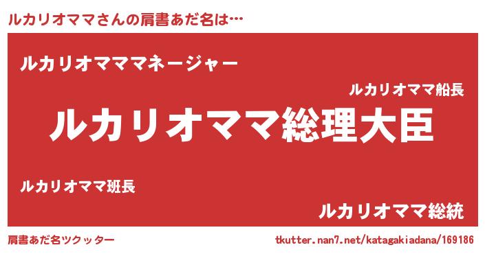 | 欧米人風あだ名 | 『ルカリオママクリステル』 |