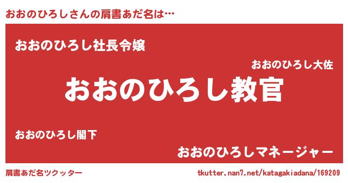 | 男性向けラノベタイトル風あだ名 | 『魔弾の王とおおのひろし』 |