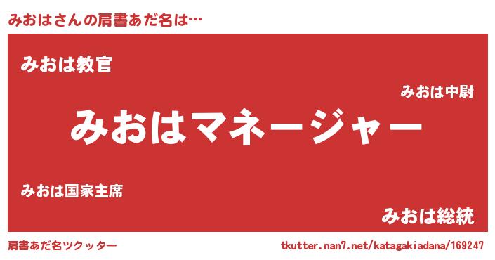 | 欧米人風あだ名 | 『アンジェラ・みおは』 |