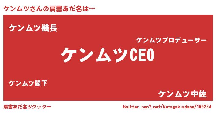 | ヒーロー風カッコイイあだ名 | 『スーパーケンムツ』『仮面ケンダー』 |