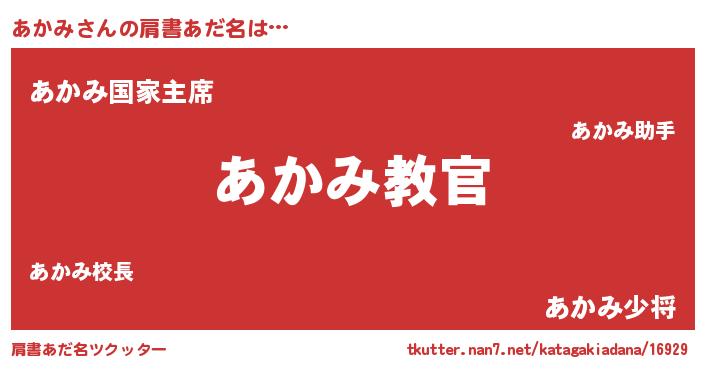 | 男性向けラノベタイトル風あだ名 | 『この素晴らしい世界にあかみを!』 |