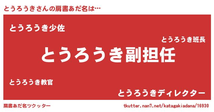 | ヘコむあだ名 | 『とうろうき(震え声)』『とうお』 |