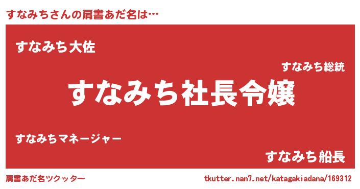| ヘコむあだ名 | 『すなもー』『すなみち(笑)』『豆乳』 |