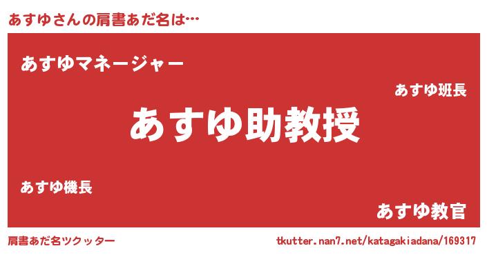 | ヘコむあだ名 | 『あすを』『あすゆ(笑)』『あすもー』 |