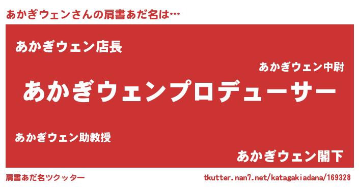 | 男性向けラノベタイトル風あだ名 | 『あかぎウェンに滅ぼされるだけの簡単なお仕事です』 |