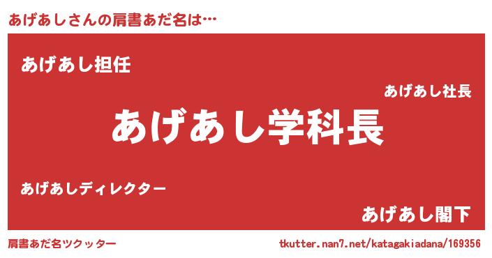 | ヘコむあだ名 | 『あげあし(震え声)』『あげもー』 |