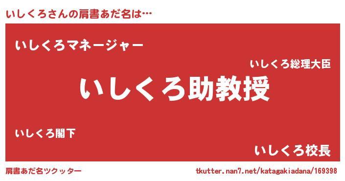 | ヘコむあだ名 | 『いしくろ(笑)』『つくし』『いしお』 |
