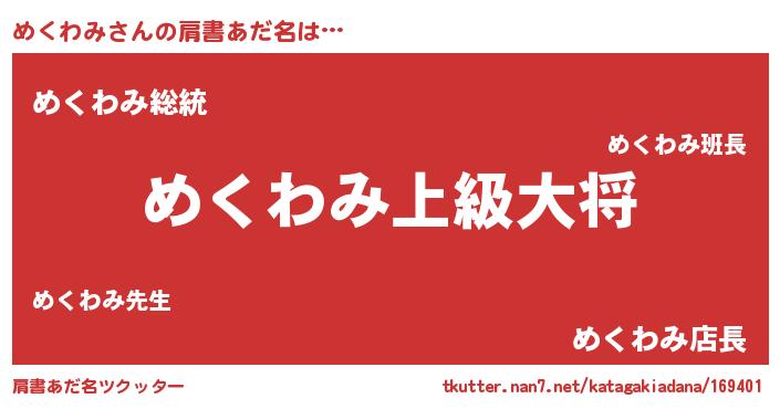 | 男性向けラノベタイトル風あだ名 | 『転生したらめくわみだった件』 |