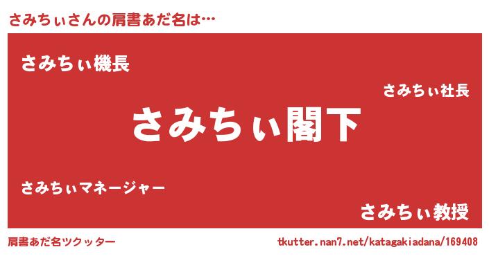 | ヒーロー風カッコイイあだ名 | 『ウルトラ戦士サミチィ』『仮面サミダー』 |