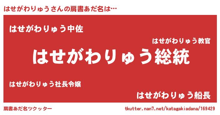 | 意味不明あだ名 | 『自称はせがわりゅう』 |
