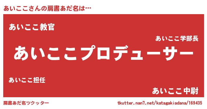 | ヒーロー風カッコイイあだ名 | 『仮面アイダー』『愛の使者あいここ』 |