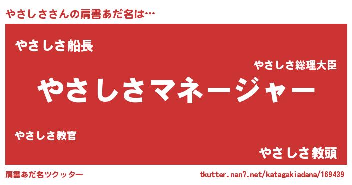 | ヒーロー風カッコイイあだ名 | 『ネオヤサシサ』『ウルトラやさしさマン』 |