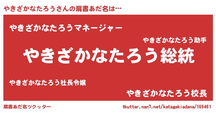 | 意味不明あだ名 | 『自称やきざかなたろう』 |