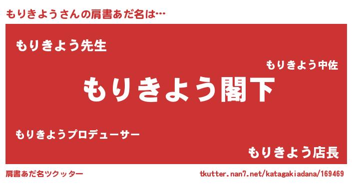 | 女子向けラノベタイトル風あだ名 | 『もりきようなんてお断りですっ。』 |