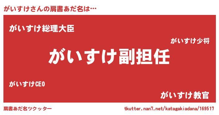 | 意味不明あだ名 | 『永久保存がいすけ』『ペロリンがいすけ』 |