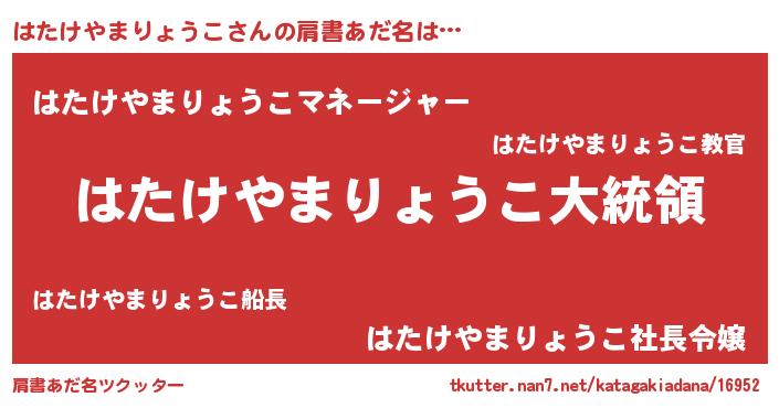 | 女子向けラノベタイトル風あだ名 | 『はたけやまりょうこの雑貨屋さん』 |