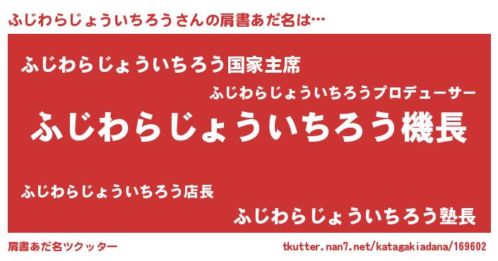 | 男性向けラノベタイトル風あだ名 | 『うちのふじわらじょういちろうが世界を掌握している!』 |