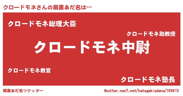 | 男性向けラノベタイトル風あだ名 | 『クロードモネ~年齢イコール彼女いない歴の魔法使い~』 |