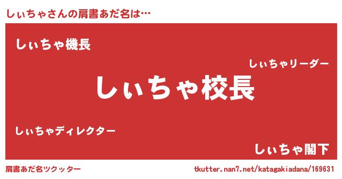 | 伝説のあだ名 | 『古文書に記された暗殺者しぃちゃ』 |