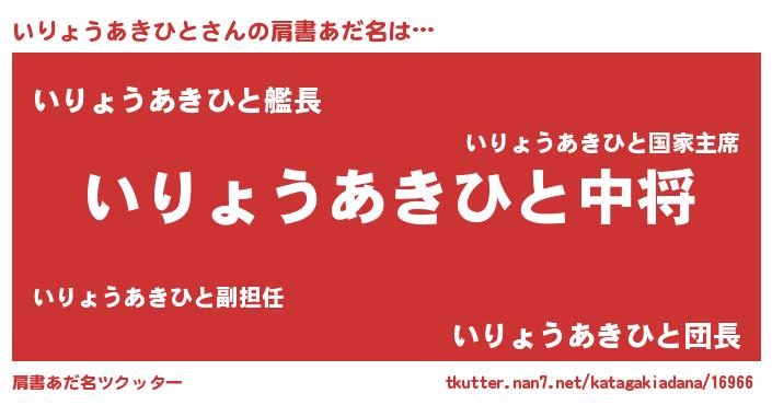| ヒーロー風カッコイイあだ名 | 『暗黒騎士イリ』『ネオイリョウアキヒト』 |