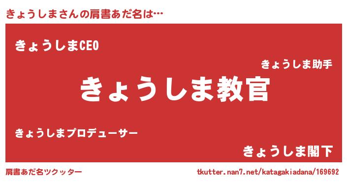 | 男性向けラノベタイトル風あだ名 | 『この素晴らしい世界にきょうしまを!』 |