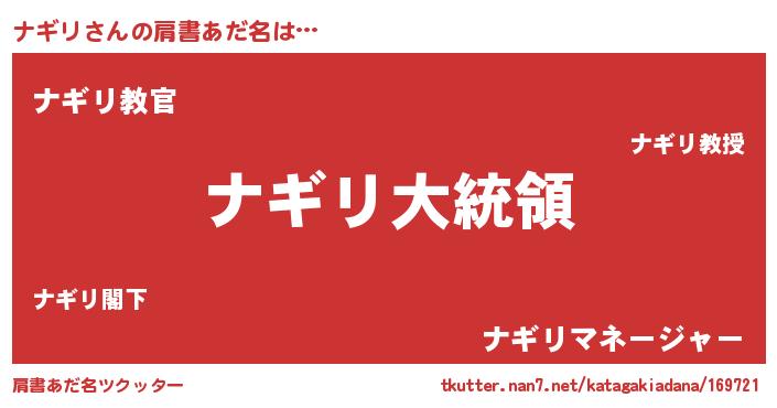 | 意味不明あだ名 | 『ナギリフォーエバー』『自称ナギリ』 |