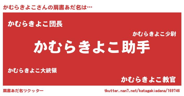 | 女子向けラノベタイトル風あだ名 | 『かむらきよこ恋絵巻』 |