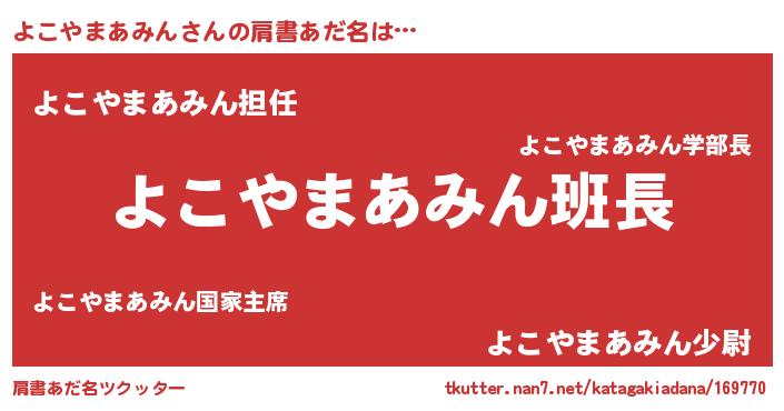 | 男性向けラノベタイトル風あだ名 | 『ダンジョンによこやまあみんを求めるのは間違っているだろうか』 |