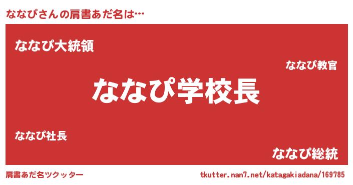 | 女子向けラノベタイトル風あだ名 | 『ななぴ恋絵巻』『ななぴの雑貨屋さん』 |