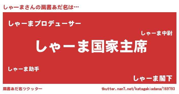 | ヒーロー風カッコイイあだ名 | 『ウルトラしゃーまマン』『炎刃騎士シャ』 |
