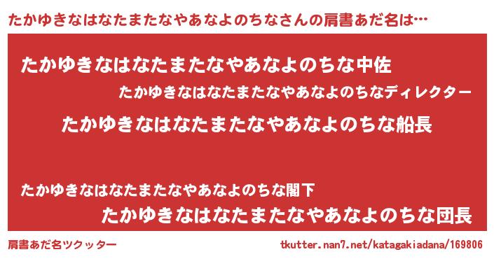 | 胡散臭い通販商品みたいなあだ名 | 『信頼と実績のサプリメント…その名も「たかゆきなはなたまたなやあなよのちな」』 |