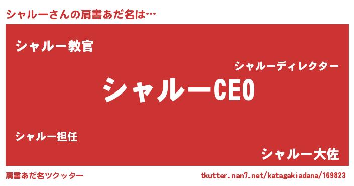 | ヘコむあだ名 | 『シャふぇ~』『シャルー(爆)』 |