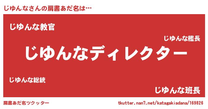 | 男性向けラノベタイトル風あだ名 | 『じゆんなに滅ぼされるだけの簡単なお仕事です』 |