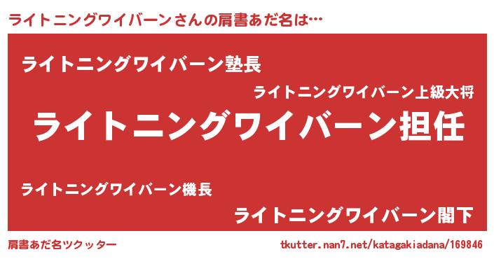 | 男性向けラノベタイトル風あだ名 | 『ライトニングワイバーンという概念が存在しない退屈な世界 』 |