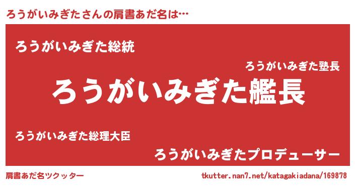 | 男性向けラノベタイトル風あだ名 | 『うちのろうがいみぎたが世界を掌握している!』 |