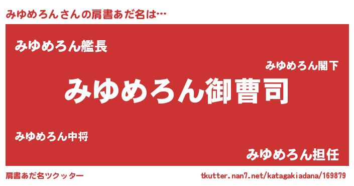 | 女子向けラノベタイトル風あだ名 | 『(仮)みゆめろんのやんごとなき事情』 |