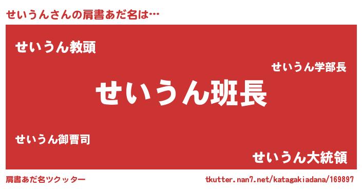| ヘコむあだ名 | 『せい太郎』『せいうん(笑)』 |