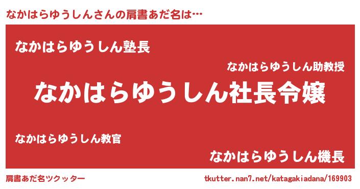| 男性向けラノベタイトル風あだ名 | 『ナカハラユウシンアートオンライン』 |