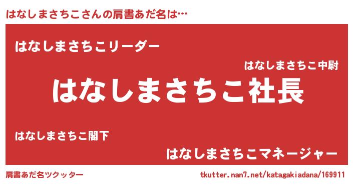 | 男性向けラノベタイトル風あだ名 | 『はなしまさちこの憂鬱』 |