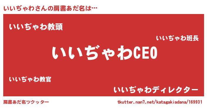 | 男性向けラノベタイトル風あだ名 | 『いいぢゃわの憂鬱』 |