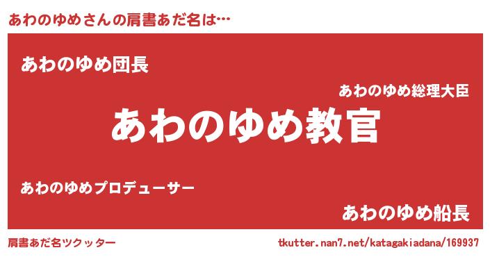 | 女子向けラノベタイトル風あだ名 | 『乙女ゲームの破滅フラグしかない悪役あわのゆめに転生してしまった…』 |