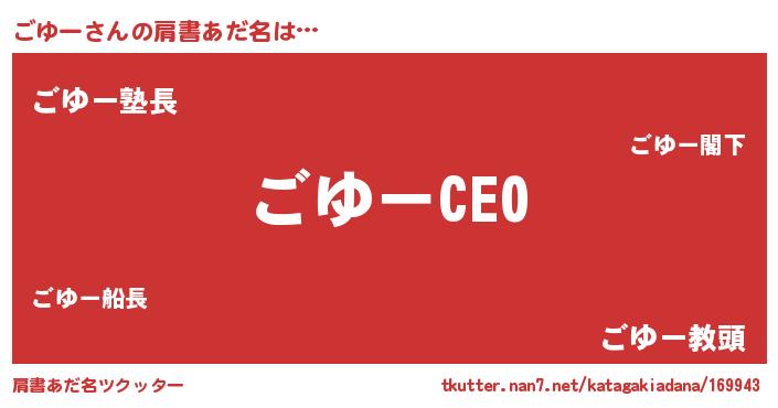 | ポケモン風あだ名 | 『ゴユチュウ』『ヒゴユー』 |